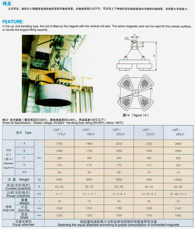 LMT-J1系列立式吊運(yùn)卷板用四極起重電磁鐵