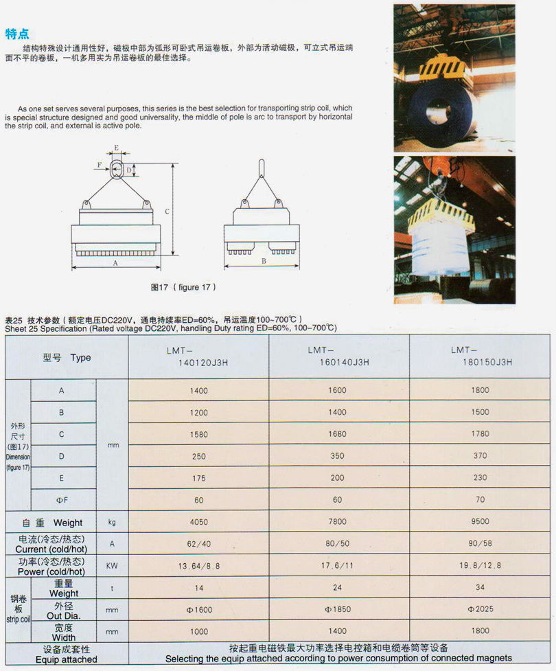 LMT-J3系列立臥通用吊運(yùn)卷板用起重電磁鐵