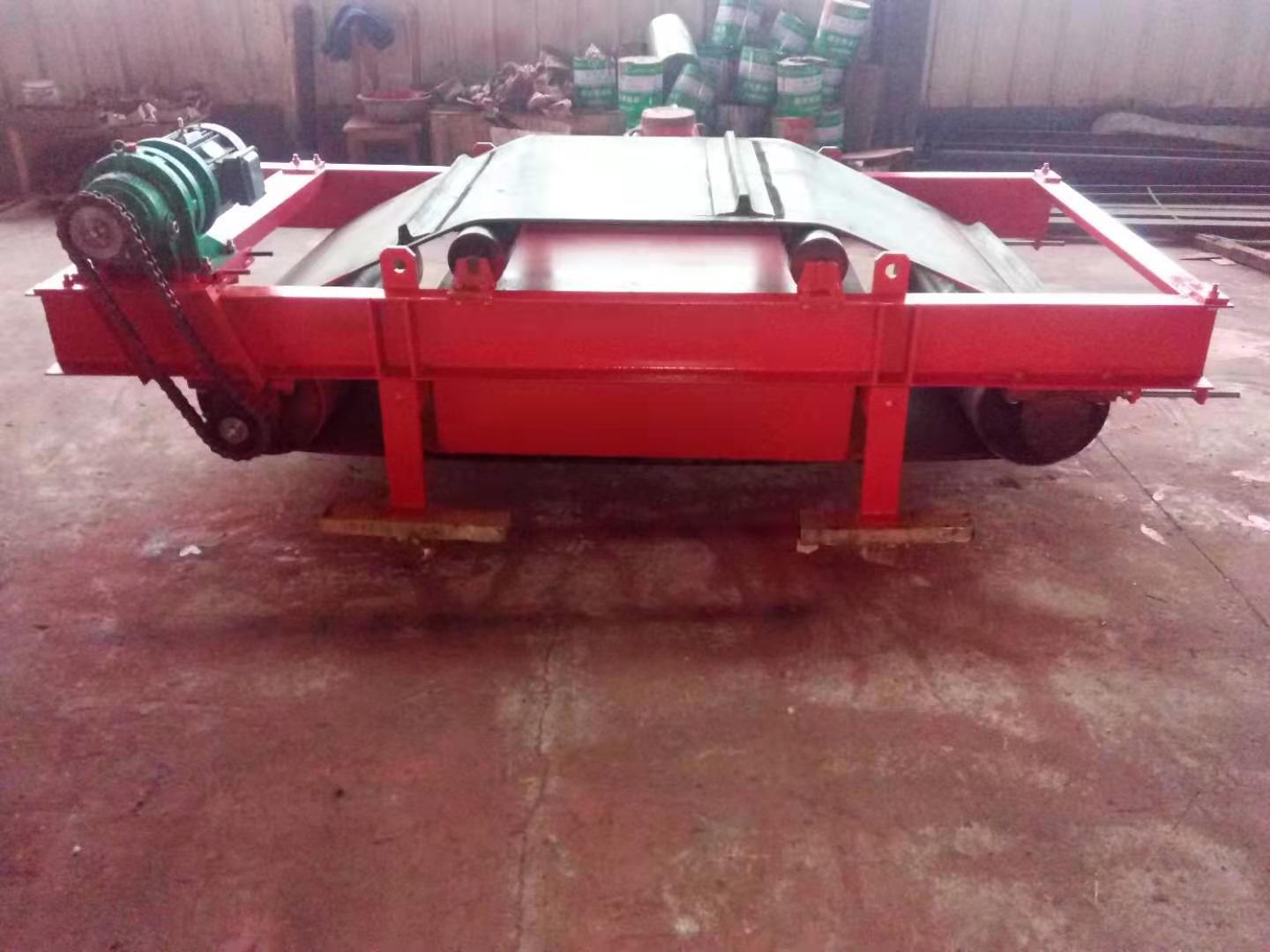RCDC系列風(fēng)冷自卸式電磁除鐵器,是在RCDA系列風(fēng)冷懸掛式電磁除鐵器的基礎(chǔ)上增加了驅(qū)動(dòng)電機(jī)、滾筒、帶刮板的卸鐵膠帶等組成的卸鐵機(jī)構(gòu)。在工作過(guò)程中卸鐵機(jī)構(gòu)自動(dòng)將卸鐵皮帶上吸附的鐵磁性物質(zhì)拋到除鐵器以外的集鐵箱內(nèi),無(wú)需停電人工清理,實(shí)現(xiàn)了除鐵自動(dòng)化, 在鋼鐵廠、水泥廠、多用于礦渣除鐵和保護(hù)輥壓機(jī)、立磨、破碎機(jī)等重要設(shè)備。