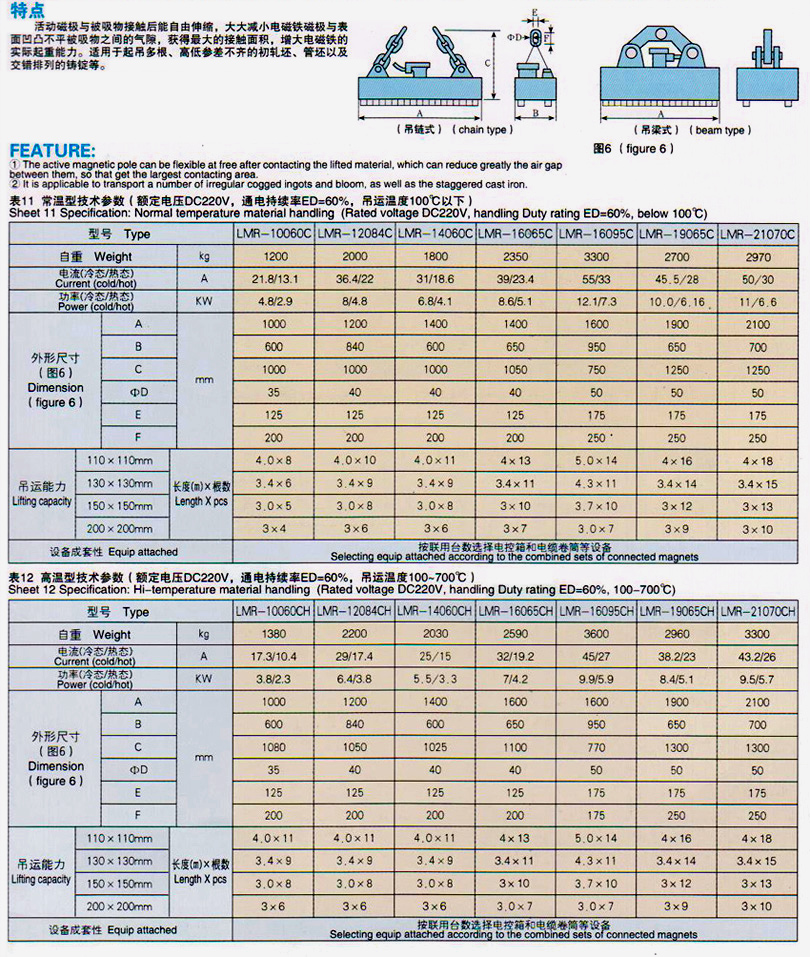 LMR-C系列吊運(yùn)高低參差不齊方坯、圓坯,型鋼用活動(dòng)磁極矩形起重電磁鐵